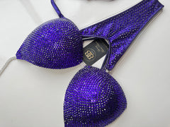 Deep Purple bikini. Deep purple lycra base. 2 row silver rhinestone connectors size 16 ss