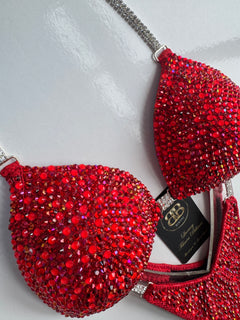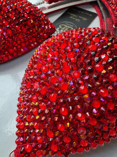 New red design created with beautiful mix of neon red, siam red, AB magma red and raspberry crystals with 2 row connectors and v shaped bottoms.