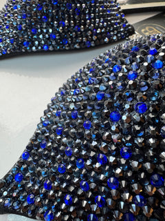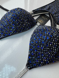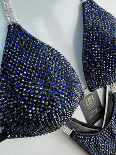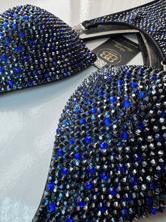 Midnight Montana Blue bikini in B/small C bra cup . Combination of shiny black, shiny hematite and montana , montana AB and cobalt crystals